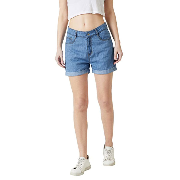 Miss Chase Women's Blue Relaxed Fit Clean Look Regular Length Mid Rise Denim Shorts
